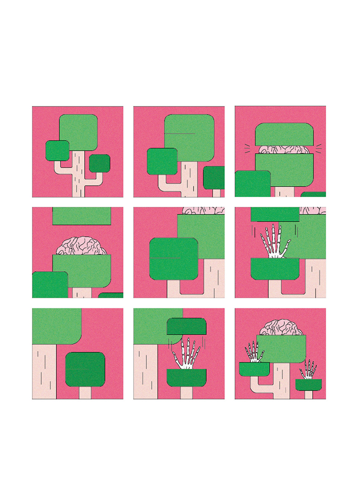 指导老师:程晓春作品简介:这是一个反抗荒诞的荒诞漫画,它的存在毫无意义,读者却可以赋予它意义,由此引起读者深思,那些最最普通平凡的事物是否都可以变得有趣起来?每天都在做的事情、见到的东西也可以如此有意思吗?将荒诞漫画印在随身携带的最常见的产品上,也让人在无聊地拿着这些事物的时候观察上面的漫画,将无意义地拿着物品变得富有意义。